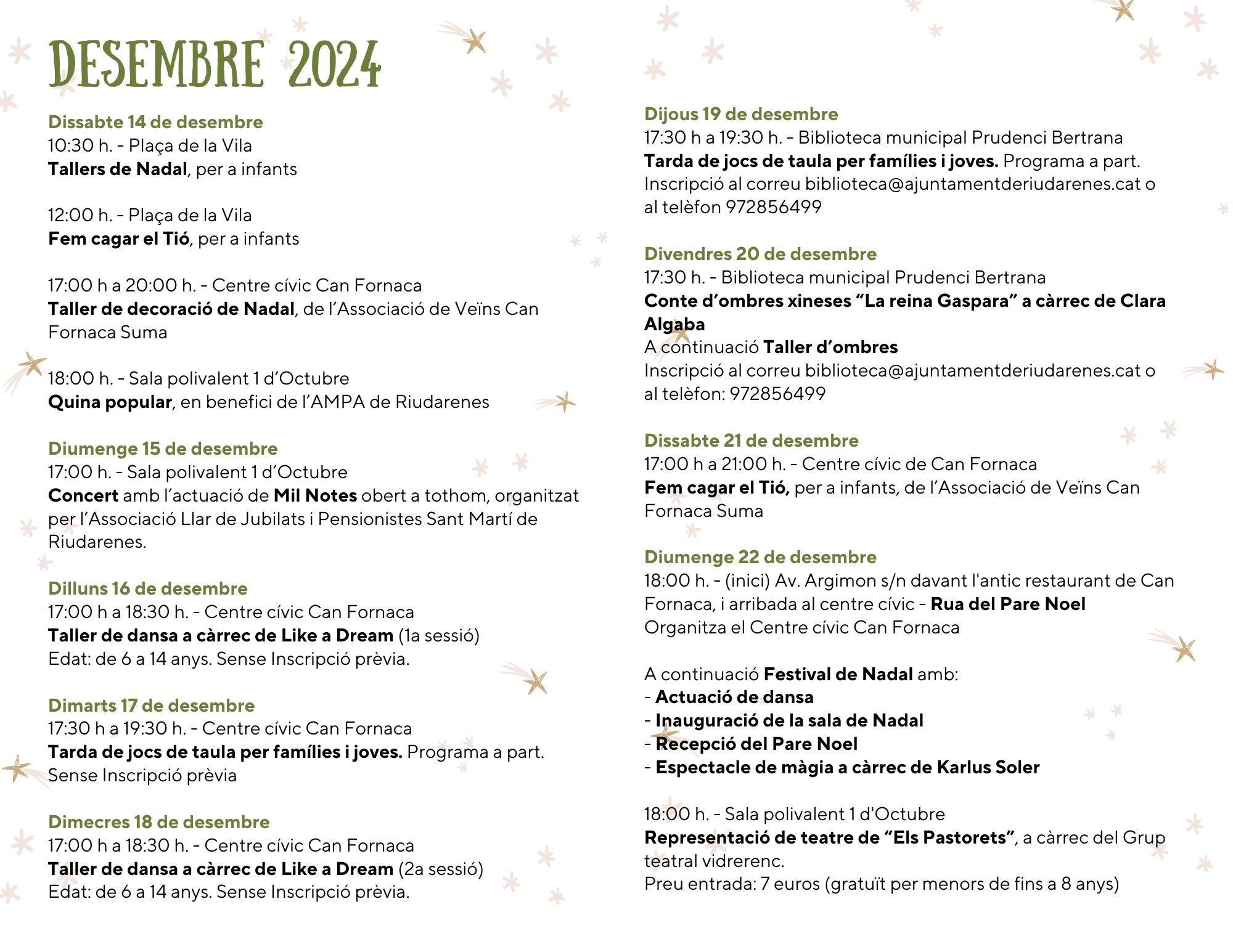 Del 14 de desembre de 2024 al 5 de gener de 2025, Riudarenes acull un munt d’activitats de Nadal.