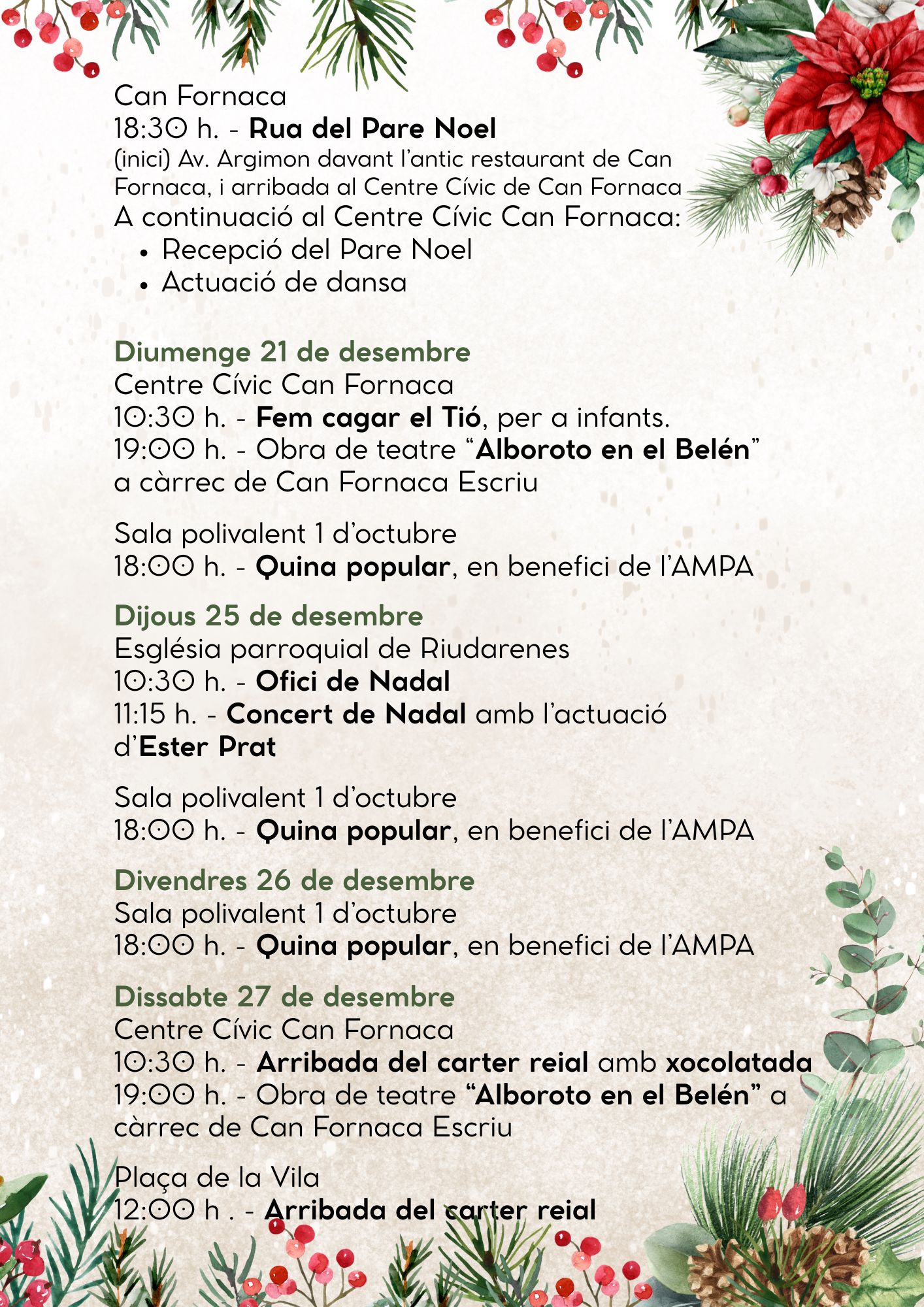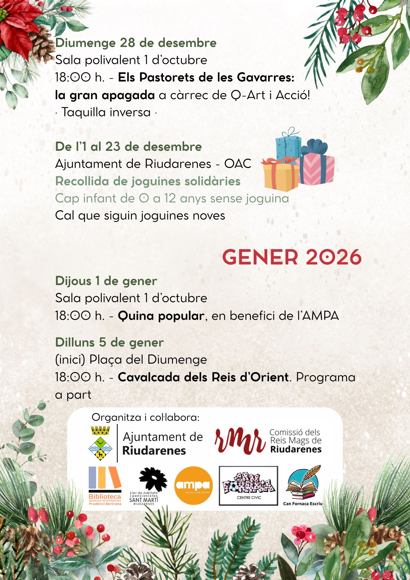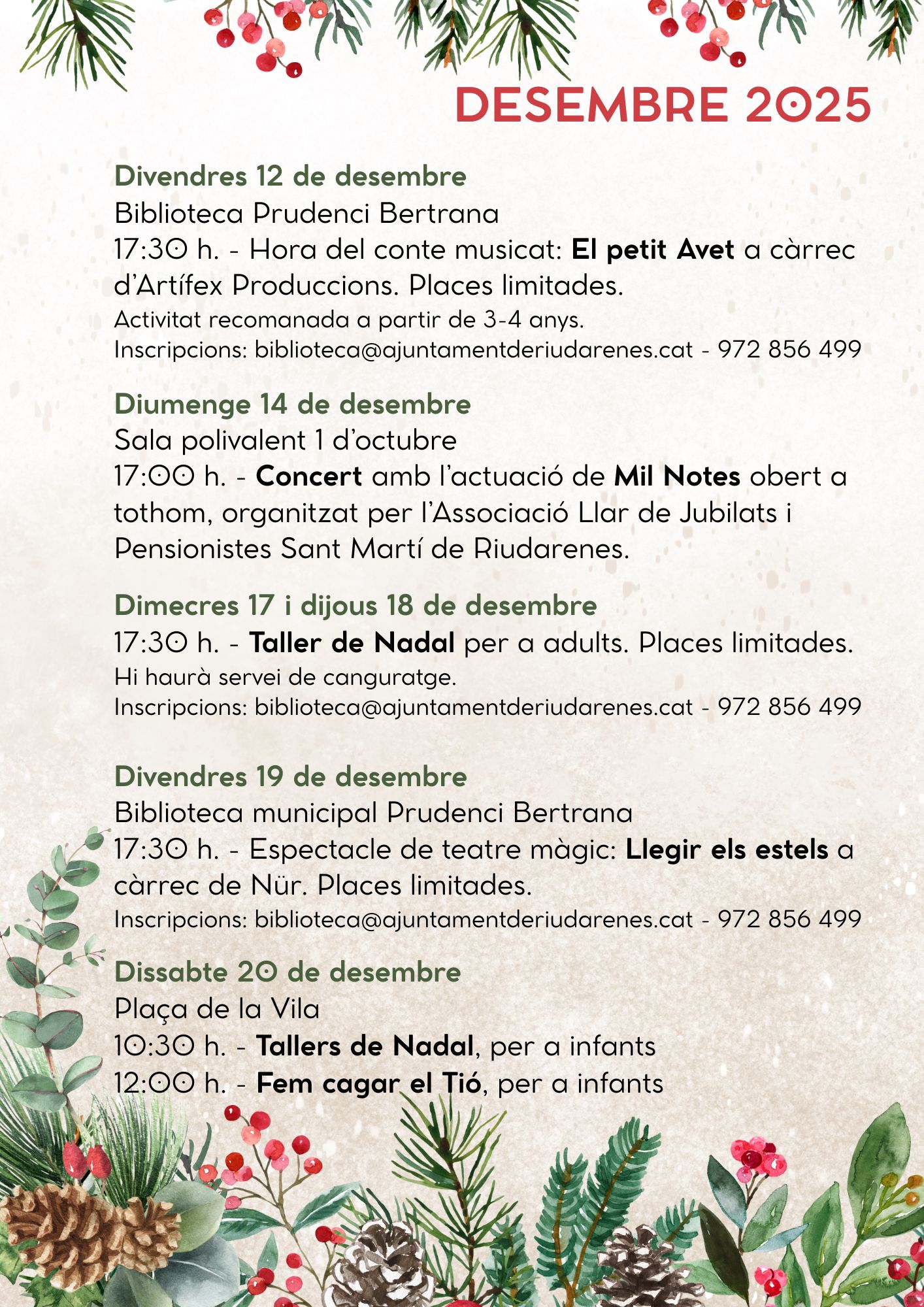 Del 13 de desembre de 2025 al 5 de gener de 2026, Riudarenes acull un munt d’activitats de Nadal.