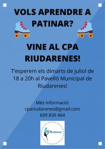 Noticies municipals APRENDRE A PATINAR AMB EL CPA RIUDARENES 28/06/2021 El CPA Riudarenes proposa per aquest juliol “Vols aprendre a patinar?” Per més informació contactar amb: cpariudarenes@gmail.com Tel.: 699 839 464 < Entrada AnteriorEntrada Posterior >