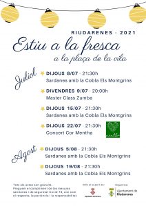 Tots els actes del programa “Estiu a la fresca” es realitzaran a la plaça de la vila.