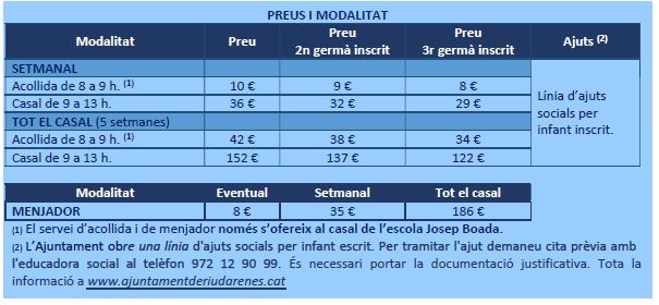Per conèixer totes les especificitats del casal d’estiu municipal, consulteu aquest enllaç: MÉS INFORMACIÓ