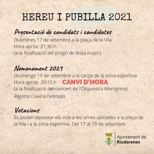 A partir d’avui i fins diumenge 19 ja es poden dipositar els vots per escollir l’Hereu i Pubilla 2021.