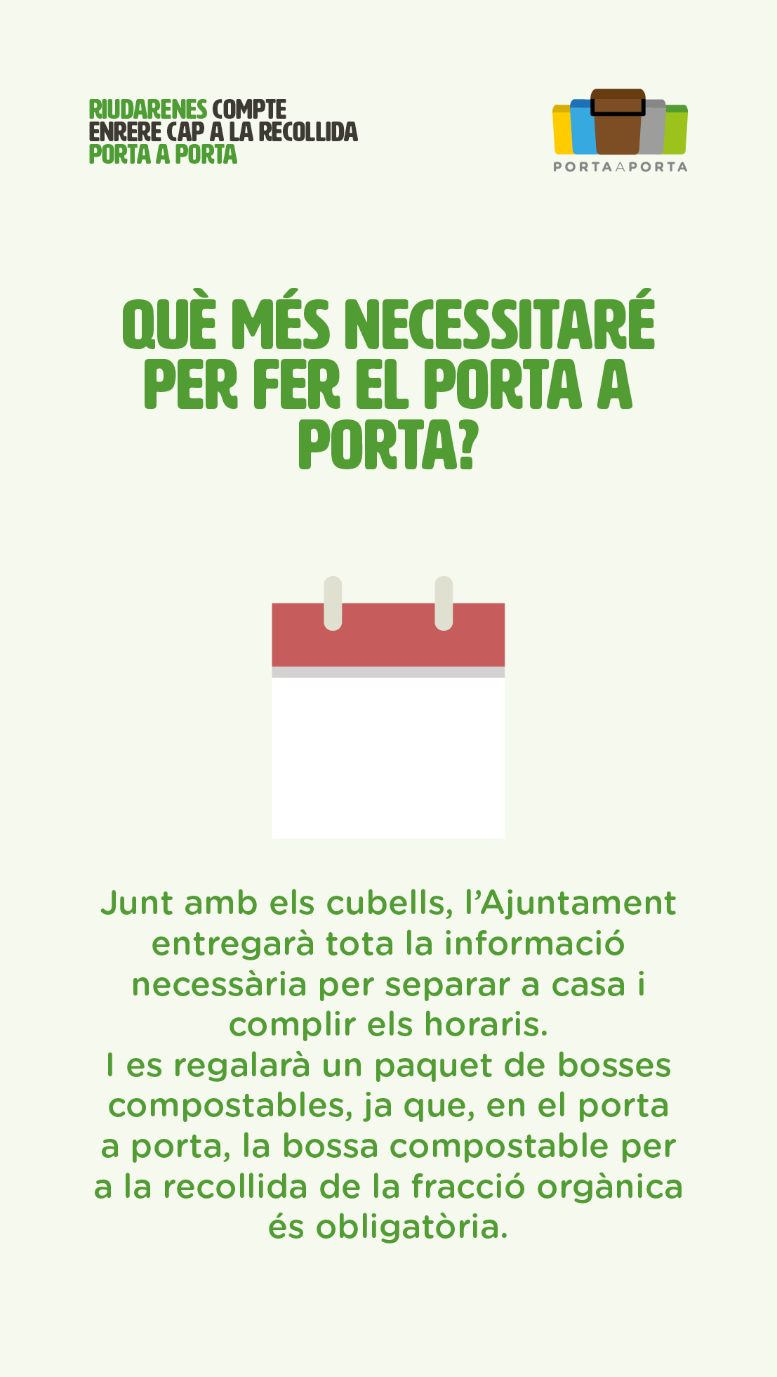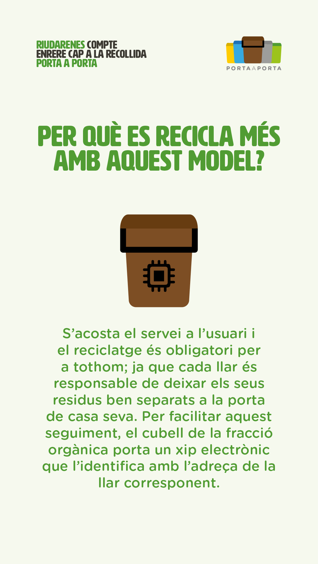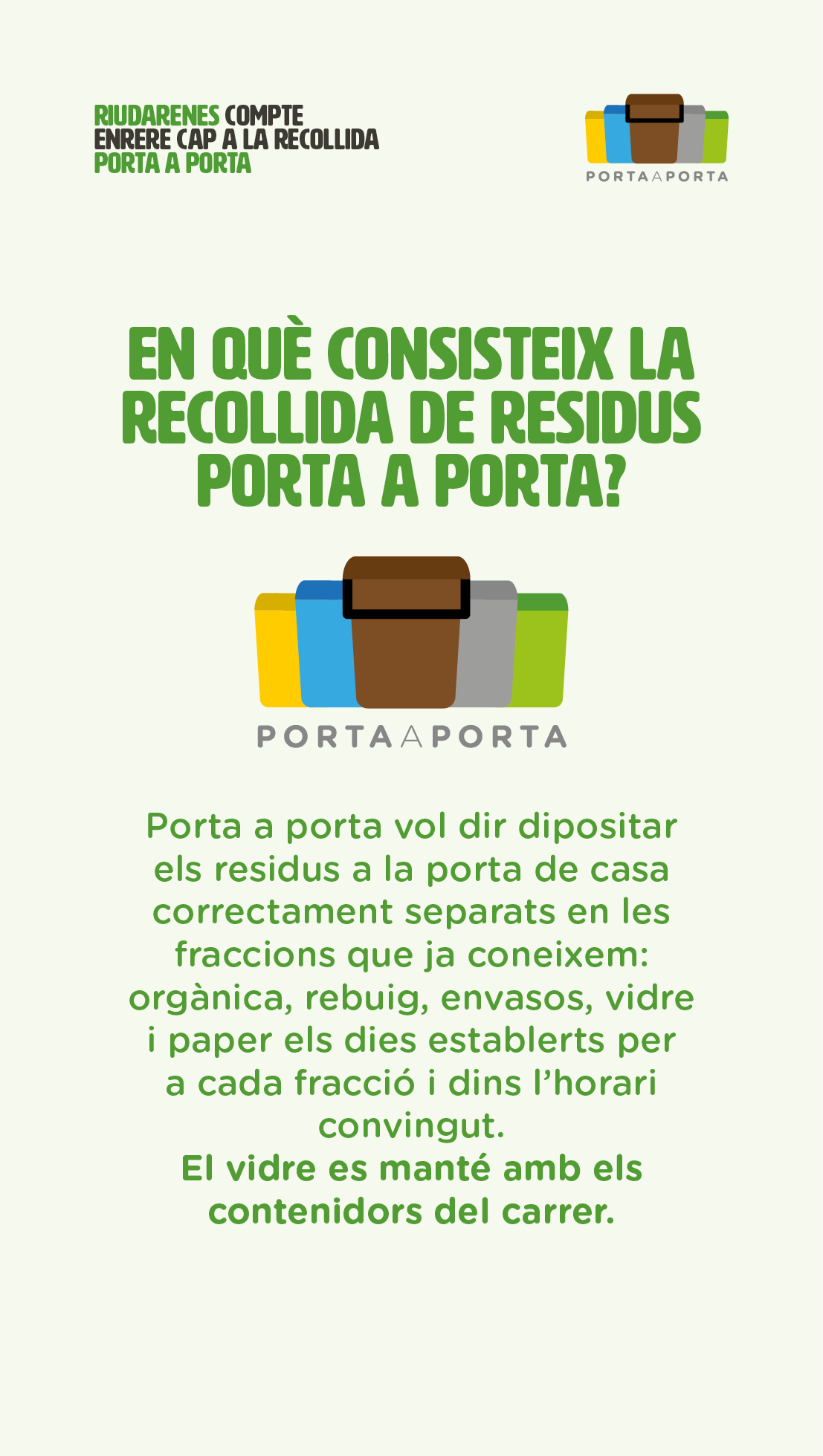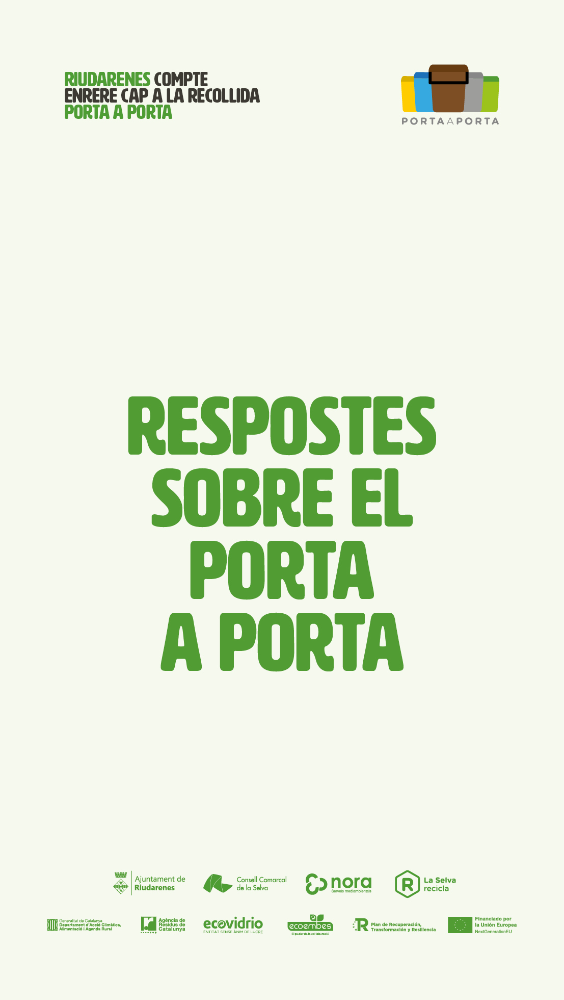 Noticies municipals RIUDARENES, COMPTE ENRERE CAP A LA RECOLLIDA PORTA A PORTA 09/08/2022 Els motius de la recollida porta a porta < Entrada AnteriorEntrada Posterior >