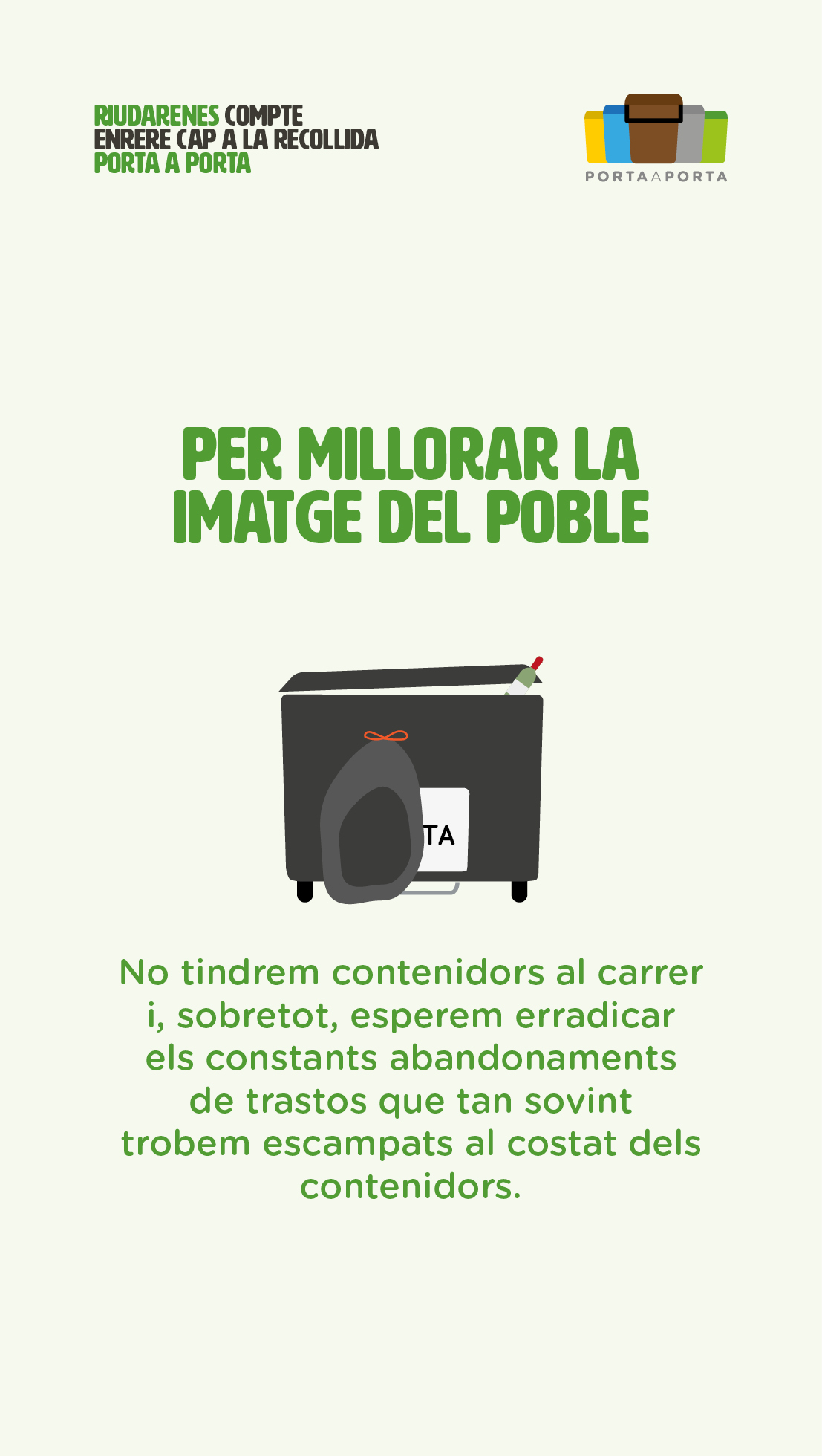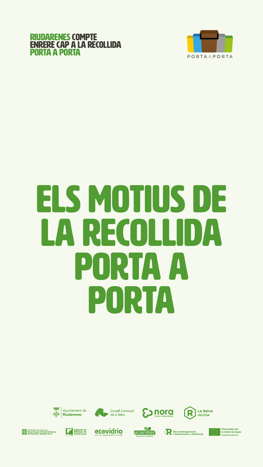 Noticies municipals RIUDARENES, COMPTE ENRERE CAP A LA RECOLLIDA PORTA A PORTA 09/08/2022 < Entrada AnteriorEntrada Posterior >