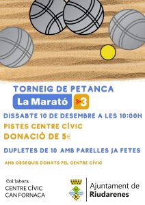 Participa al torneig de petanca de Can Fornaca – Riudarenes, en benefici de La Marató.
